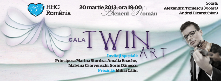 În seara aceasta, la Ateneul Român, va avea loc evenimentul Twin Art, prima Gală care poartă semnătura Hope and Homes for Children. Vom fi si noi acolo, pentru o porție consistentă de muzică clasică și povești despre arta de a fi om. Concertul va fi susținut de violonistul Alexandru Tomescu și pianistul Andrei Licareț, evenimentul va fi prezentat de Mihai Călin, iar invitați speciali vor fi Principesa Marina Sturdza, Amalia Enache, Malvina Cservenschi și Sorin Dănescu.
