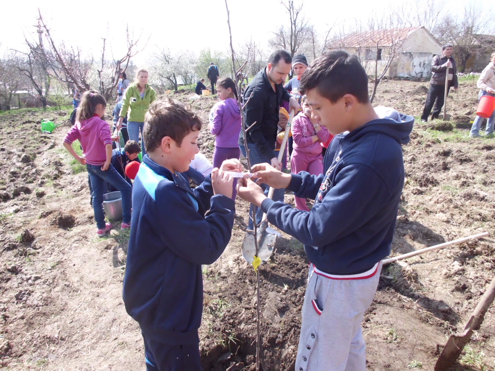 Astazi, la Heresti, 40 de copii de 13 si 14 ani au “absolvit” cursurile Scolii de cetateni. Timp de o luna au invatat ce inseamna sa fii un bun cetatean, au propus actiuni pe care le pot face singuri in folosul lor si al satului si, dintre acestea, au votat prima astfel de actiune: amenajarea curtii scolii. Apoi si-au ales echipele si si-au impartit responsabilitatile: un grup a cautat sponsorii – pe cei care le puteau aduce pomii pentru livada si florile pentru gradina din fata scolii, alt grup a invitat reprezentantii Primariei, ai Politiei, preotul satului, presa. Zece copii s-au ocupat de pregatirea terenului si plantare si altii au facut astazi fotografii, filmari, au luat declaratii de la participantii la actiune.
