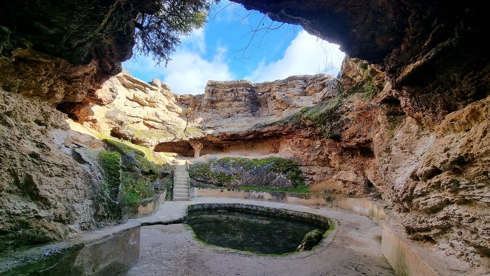 Din complexul antic, au rămas azi bazinele cu banchete pe toate laturile, rețeaua de canale săpate în stâncă prin care este direcționată apa, părți din fostele lăcașe de cult.
