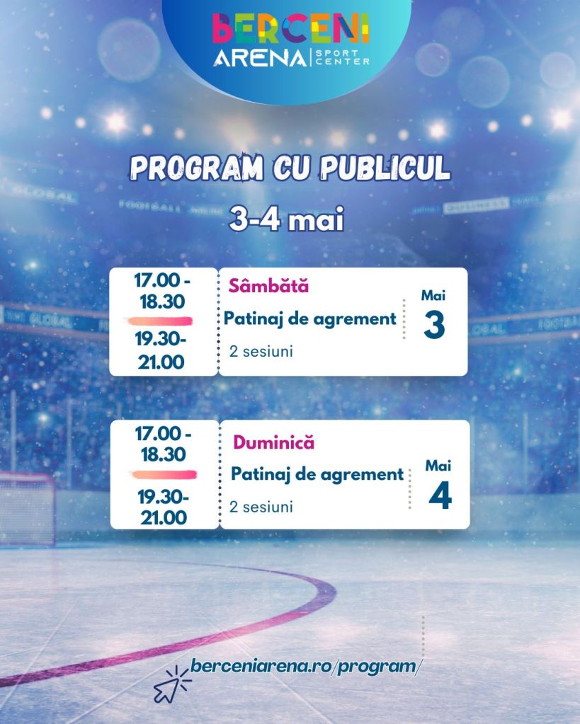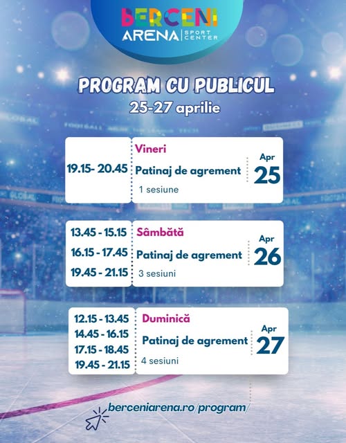 Pentru cei care vor, pur și simplu, să se bucure de câteva ore de mișcare pe gheață și care știu deja să patineze, complexul a publicat programul acestui weekend.
