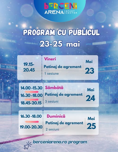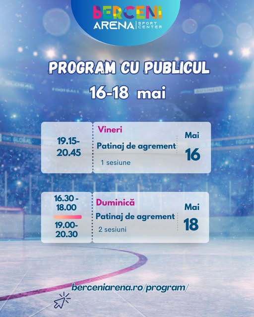 Mai multe despre program, pe: Facebook.com/Patinoarul Berceni Arena
