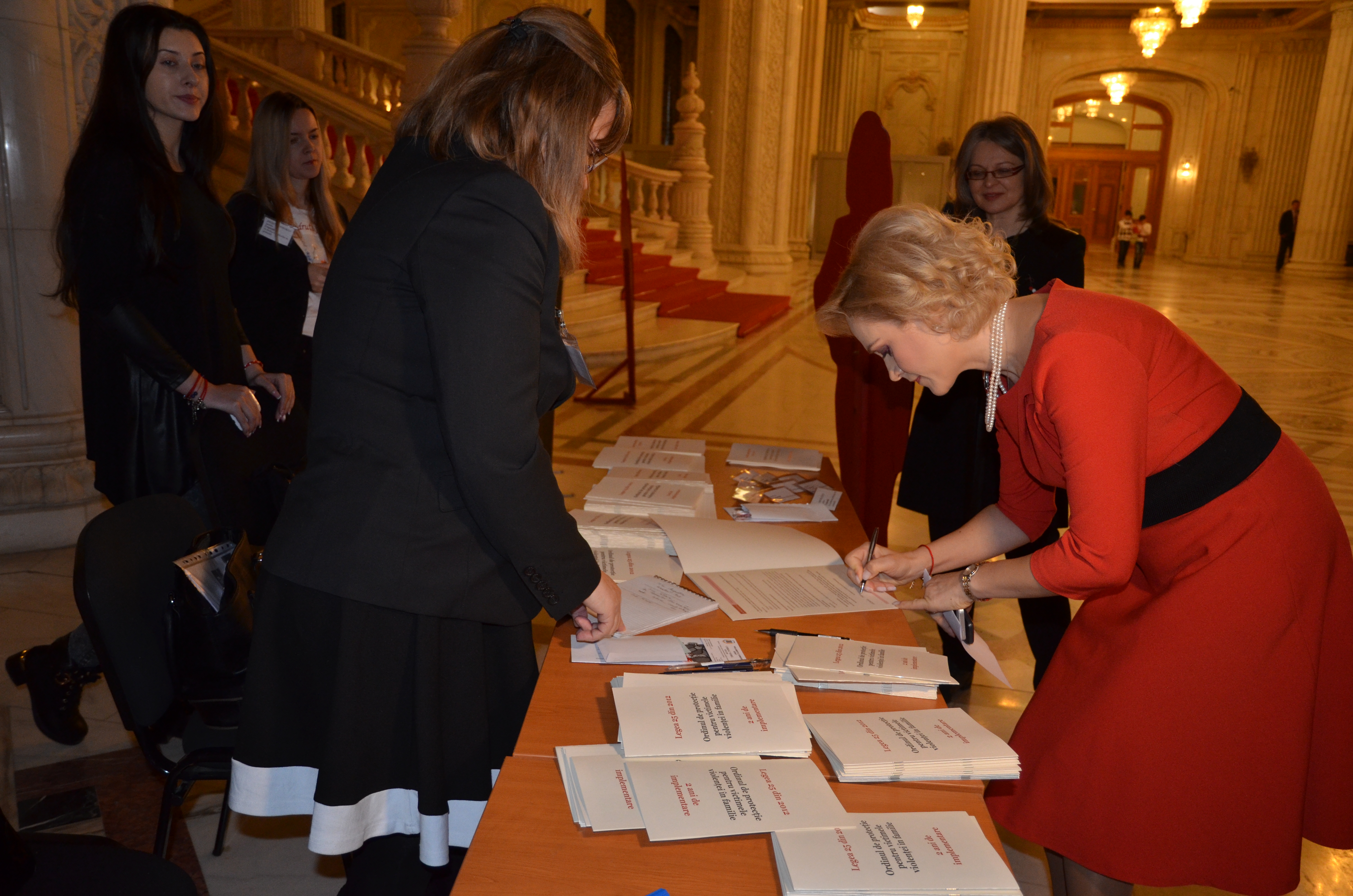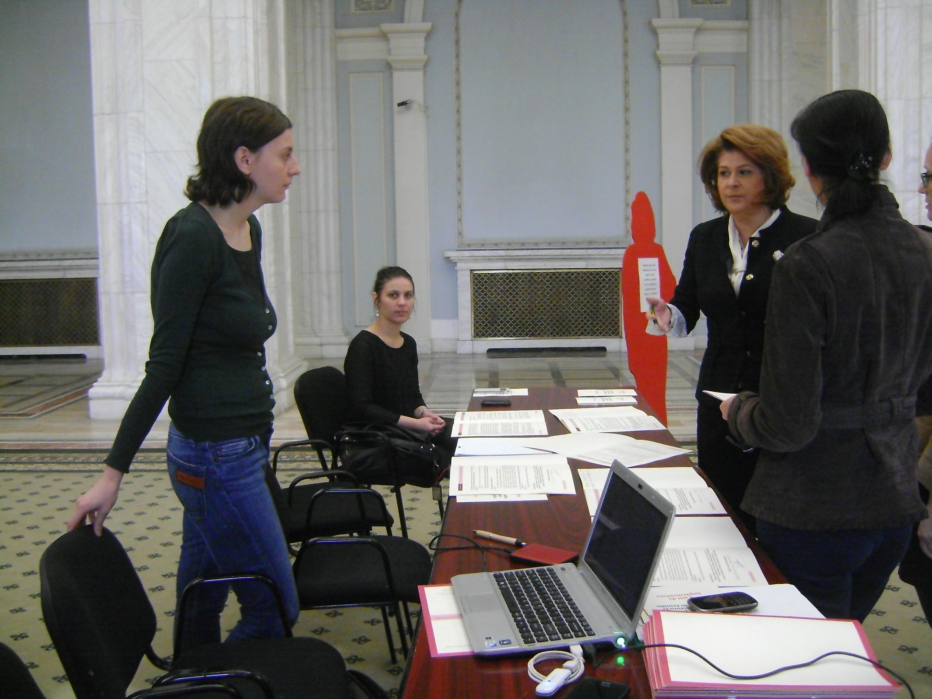 “Numele meu este Drăguța și nu mai sunt în viață pentru că a durat o lună de zile până când am primit ordin de protecție”. Este una dintre multele povești de viață încheiate în acest fel în urma aplicării cu întârziere sau a neaplicării ordinului de protecție. Povești ca aceasta au stat la baza monitorizării realizate, timp de doi ani, de o rețea de ONG uri care au cules date de la fiecare judecătorie, direcție de medicină legală, Poliție sau adăpost pentru femeile victime ale violenței, pentru a stabili dacă ordinul de protecție, în forma sa actuală, este eficient. Concluzia raportului: fără termene de timp clare și extrem de scurte, ordinul de protecție e aproape inutil. Acesta a fost motivul întâlnirii de astăzi de la Senatul României, Palatul Parlamentului, între organizațiile nonguvernamentale, senatori, deputați sau membri ai comisiilor permanente. Pentru că indiferent că vorbim despre aleși din Parlament, foști miniștri, reprezentanți ai organizațiilor nonguvernamentale, ai mass media sau oameni obișnuiți care au venit să susțină cauza siguranței femeilor în familie, toti aceștia pot crea, împreună, legi mai bune pentru oameni. A fost o zi plină la Parlament; dar printre audieri, întruniri ale comisiilor, peste 40 de senatori și deputați au trecut pe la standul „Ordinul de protecție – doi ani de existență” pentru a semna declarația de susținere a unei legi mai bune pentru femeile victime ale violenței în familie.