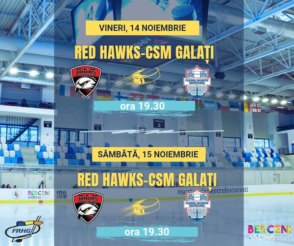 Patinoarul Berceni Arena devine centrul hocheiului pe gheață la finalul acestei săptămâni, când va găzdui două confruntări spectaculoase între echipele Red Hawks București și CSM Galați.